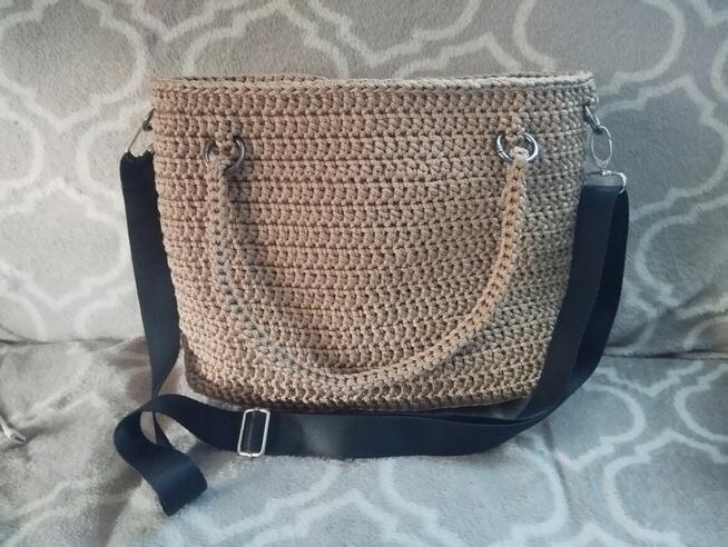 Na sprzedaż nowa torebka wykonana ręcznie na szydełku ze sznurka poliesterowego Kolor: beżowy. Typ: shopperka do ręki ...