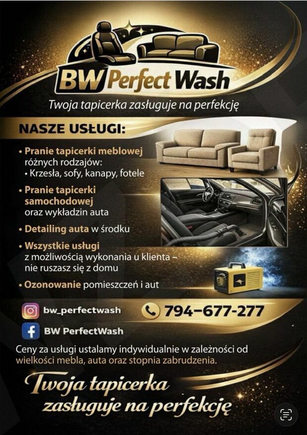 Pranie tapicerki meblowej, samochodowej,ozonowanie .